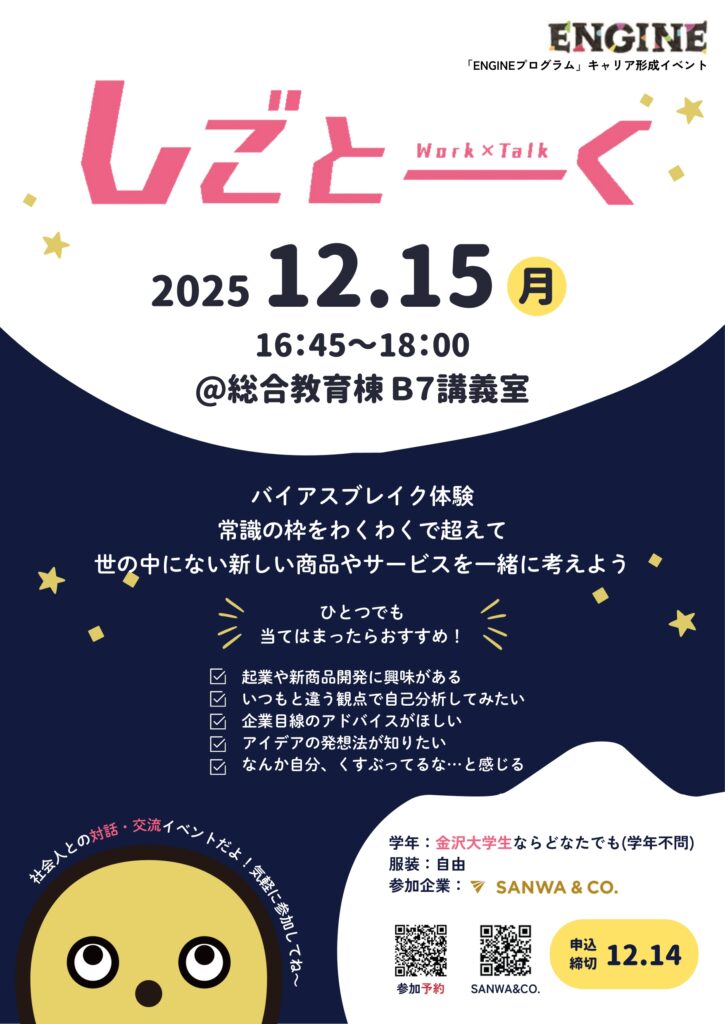 2025第4回金沢大学しごとーく 参加者募集!
