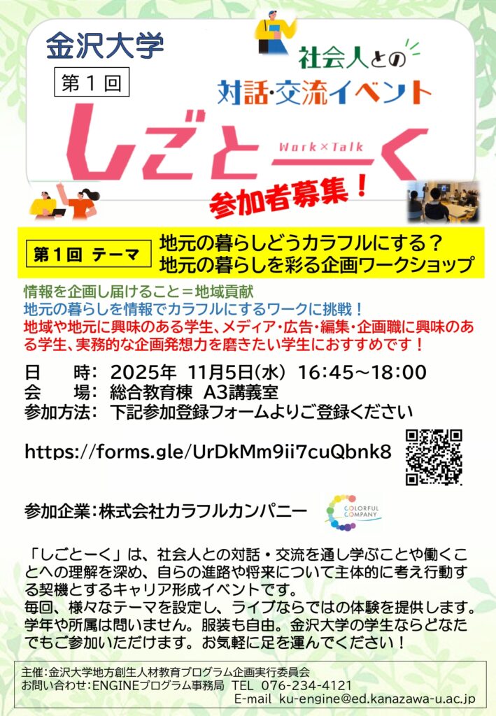 2025第1回金沢大学しごとーく 参加者募集!