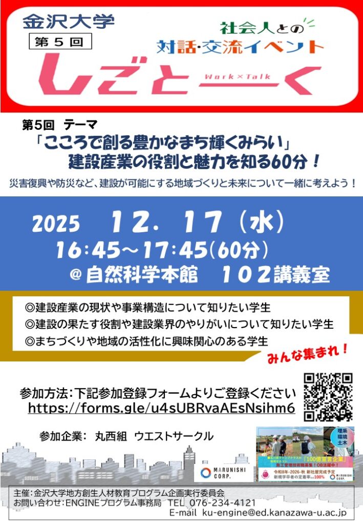 2025第5回金沢大学しごとーく 参加者募集!
