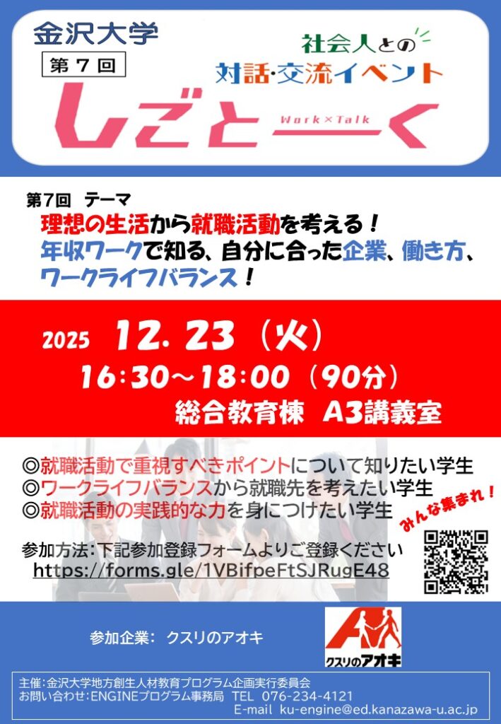 2025第7回金沢大学しごとーく 参加者募集!